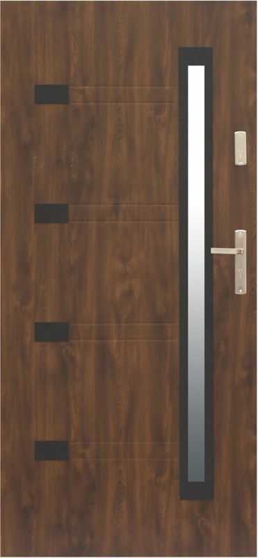 Vonkajšie dvere Zitron 80 ľavý orech sú vyrobené z pozinkovanej ocele odolnej voči vlhkosti. PVC fólia zaručuje ich estetický vzhľad. Nie sú zdeformované. Sú ideálne nielen do komerčných zariadení a vonkajších priečok nevykurovaných miestností, ale aj do obytných budov. Model je vybavený kolíkmi proti krádeži, ktoré zvyšujú úroveň zabezpečenia. Zitronové ľavé vonkajšie dvere z orecha tiež pomôžu znížiť účty za energiu. Poskytujú dobrú tepelnú izoláciu vďaka dodatočnej vrstve polystyrénu. Sú vybavené stopsolovým sklom, ktoré zastavuje slnečné svetlo a zabraňuje nahliadnutiu do interiéru budovy. Vyrobené v Poľsku. Naša ponuka obsahuje ďalšie varianty a farby dverí zo série Zitron